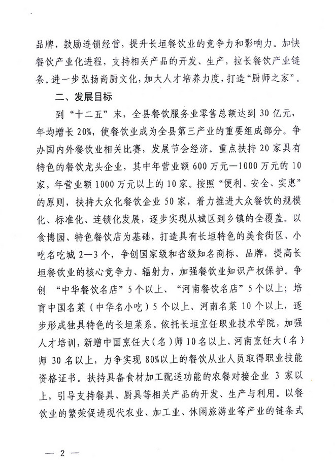 长垣县人民政府关于支持餐饮业发展的意见